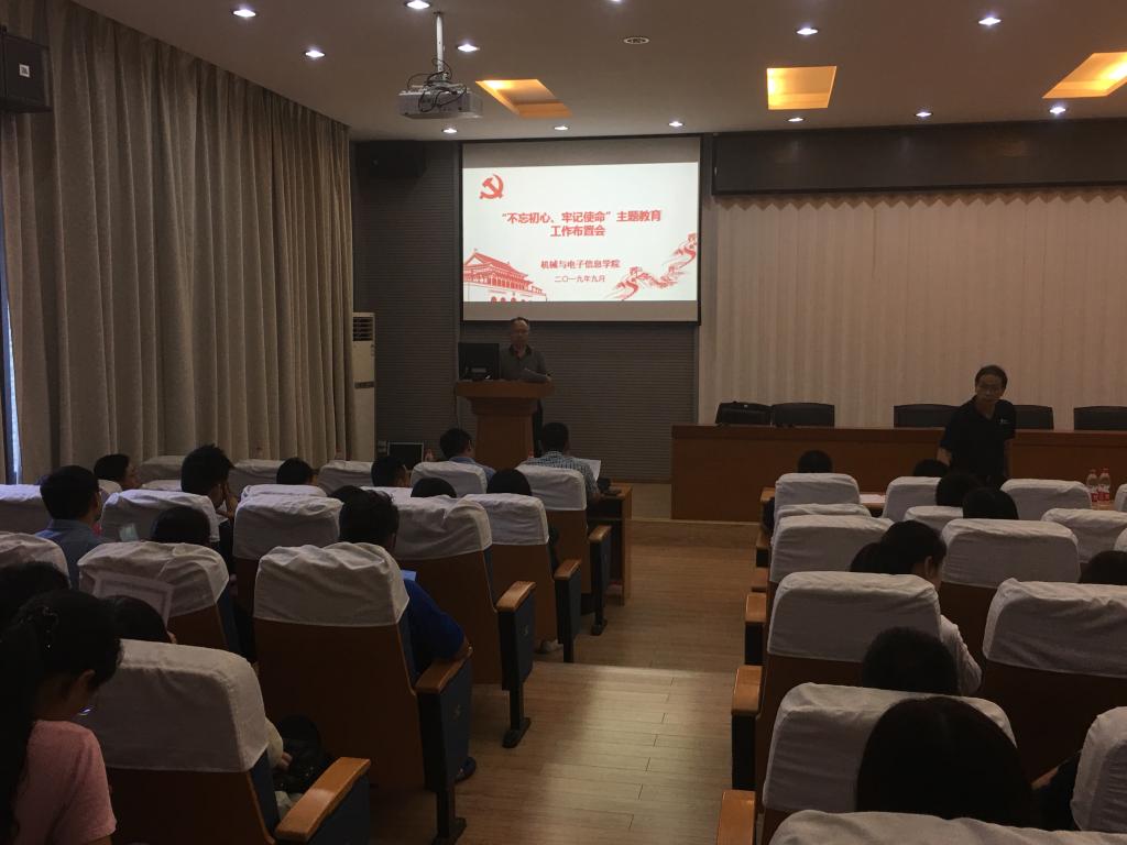 院党委书记瞿祥华首先传达了学校“不忘初心、牢记使命”主题教育相关会议精神和《中共中国地质大学(武汉)委员会“不忘初心、牢记使命”主题教育工作方案》,并详细介绍了学院党委关于开展“不忘初心、牢记使命”主题教育的工作方案。随后宣读了学院“不忘初心、牢记使命”主题教育工作组名单。他强调,本次主题教育有别于以往,不分阶段,不设环节,学习教育、调查研究、检视问题和整改落实是四项重点措施,要贯通起来,防止“两张皮”,切实围绕学校第十二次党代会报告、“十三五”规划、“一流学科”建设方案、“一流本科”教育行动计划,围绕机械工程一级学科博士点建设以及综合改革方案、学院民生工程及其2018年民主生活会梳理出的27条问题清单,看是否落实落地解决问题。学院将认真开展本次主题教育,激励广大党员干部不忘初心、牢记使命,共同推动学院事业高质量发展,让教职工切实感受到主题教育带来的新变化和新成效。