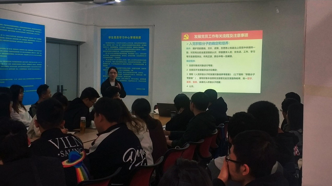 (通讯员 陈曦 张晓庆 王润翔)4月4日下午2:30,我院在63#学习支持中心7号学习室开展学生党务工作者培训会。参加本次培训的有学院本科生党支部书记及支委成员、2018级研究生党支部书记及支委成员、学生党建办公室工作人员。学院党建辅导员、学生党建办公室主任黄梅娇担任培训主讲,此次培训主题为“学生党员发展及转正工作流程及注意事项”。