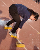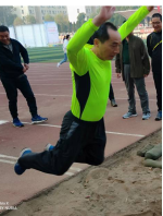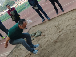图3 机电学院教师代表在主席台宣誓 图4瞿祥华书记立定跳远比赛