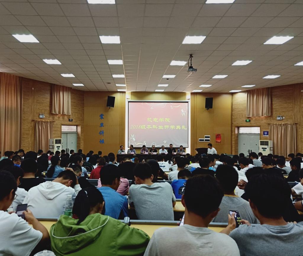 (通讯员 任婷婷 姚复嵩 许小康)9月27日14时30分,机电学院2018级本科生开学典礼于教三楼109室准时举行。机电学院党委书记瞿祥华,院长丁华锋,副院长李波、罗杰、文国军、黄田野,电子信息工程系主任陈分雄,机械设计制造及其自动化系主任宋潮龙,工业设计系主任陈晓鹂,通信工程系主任李杏梅及各专业教师代表,2018级全体新生参加本次活动。典礼由党委副书记齐世学主持。