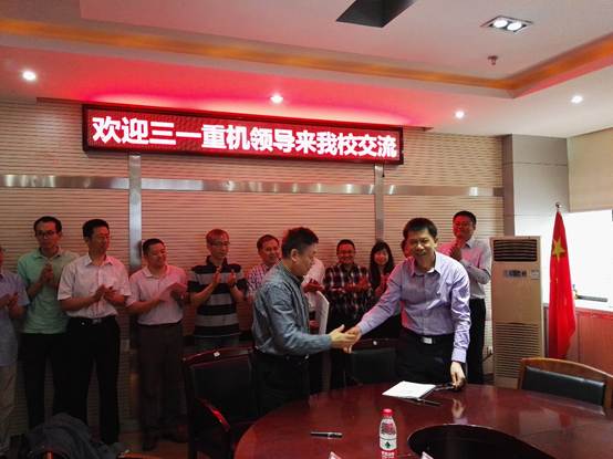 5月16日,三一重工副总经理、三一重机研究本院院长曹东辉一行来我院交流深化校企合作,并与我校签订战略合作协议。校党委副书记傅安洲,校友合作处处长徐岩、自动化学院院长吴敏、科发院副院长张锡军、发展规划处副处长严嘉以及我院院长丁华锋、党委书记王海花参加座谈交流,会议由王海花主持。