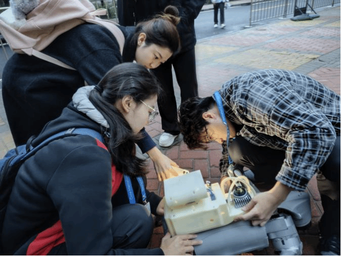 同时,学校和学院非常重视大创赛,为参赛团队配备专业指导老师,并链接外聘行业专家资源,不仅在技术与方案上“纠错”,更帮助团队拓宽视野,避免走弯路。何乔说道:“本科生院朱部长、王部长,学院瞿书记、吴书记,导师程卓老师及负责对接赛事的老师们更是现场指导,陪伴我们一起熬夜打磨作品,丁老师甚至凌晨五点就前往比赛场地帮我们调试设备。”