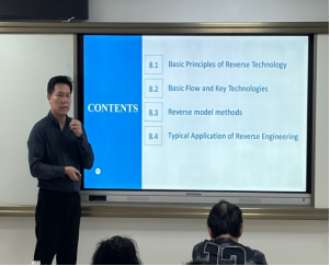 竞赛过程中,四位青年教师严格遵循教学大纲要求,围绕教学目标,精心设计教学内容,通过生动的讲解和实例展示,将课程重难点转化为直观生动的教学场景,尽显学院青年教师的风采和教学实力。机械工程系梅爽老师在《机械CAD/CAM》课程中,精彩展示了逆向工程的相关内容。他结合实际案例,深入浅出地概述了不同逆向建模方法的基本原理,鼓励学生在后续课题研究中进一步独立探索和深入思考,培养学生的自主学习和研究能力。电子信息系李莹玉老师讲述《先进感知与物联网技术》中的物联网定位技术时,从"为什么"和"怎么用"两个方面,清晰地让学生了解物联网中定位技术的必要性及运用方法。其PPT融入大量动画和图表,内容丰富且通俗易懂,有效帮助学生理解复杂的技术知识。机械工程系柏伟老师在《机械原理》课程中,以热点案例引入问题,通过实物讲解机构具有确定运动的条件,并细致讲解平面机构自由度公式及注意事项,加深了学生对课程内容的理解和思考,让抽象的理论知识变得具象化。通信工程系易颖老师对LC振荡器的定义和工作原理通过板书进行详细讲解,逻辑严谨,内容充实,注重通过实际数据和案例解决学生的难点问题,展现了扎实的专业知识和教学能力。