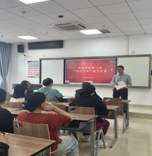 校级教学督导吴国平教授对此次活动给予了充分肯定与指导,他认为机电学院一直以来非常重视教学,时刻关注教师教学水平的提高及教学团队的建设。此次课程思政教学比赛,老师们既展示了在教学中如何运用渗透式教学、互动式引导等方式为学生传授知识,又介绍了如何巧妙地在课程中融入思想政治教育元素,潜移默化的影响和塑造学生的品德和人格。他认为老师们在教学中所展现出的真挚情感和真诚付出,将为学生以后的成长成才提供坚实的精神支撑和引领,这些成功的经验和案例将有助于进一步丰富课程思政教学内涵,推动教育教学工作不断创新和完善,培养更多德智体美劳全面发展的社会主义建设者和接班人。