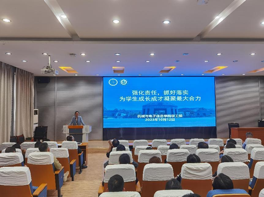 李波副院长对卓越工程师培养标准进行了解读,全面介绍了国家卓越工程师学院的建设背景、总体规划、核心任务以及建设的必要性。吴迪副书记就建立良好导学关系、进一步加大学科竞赛师资培训力度、学生升学、就业以及心理健康工作等方面进行了总结,全面助力学生成长成才。文国军副院长就实验室安全问题进行了强调和说明。丁华锋院长通报了机械工程一级学科博士点建设情况。