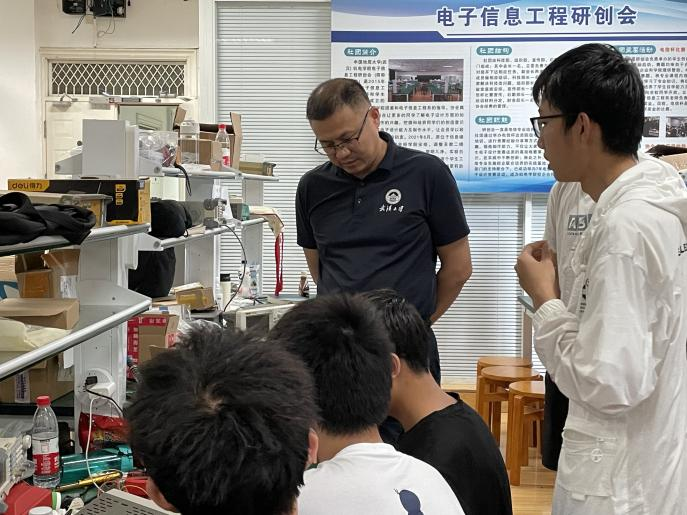 报告结束后,三位老师参观了机电学院的201电赛基地,并结合多年一线实践经历针对参赛学生们遇到的具体问题进行了经验分享与指导,同学们纷纷表示获益匪浅。通过此次活动,机电学院进一步加强了与西安电子科技大学、武汉大学和华中科技大学在学科竞赛与实验教学方面的交流与合作。