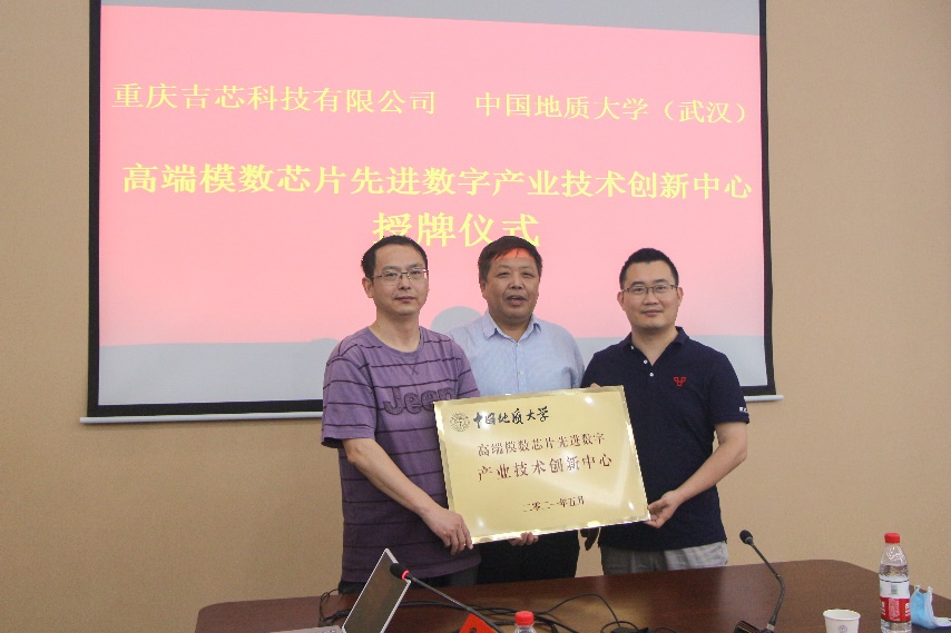6月21日上午,重庆吉芯科技有限公司与中国地质大学(武汉)联合创立的高端模数芯片先进数字产业技术创新中心授牌仪式圆满举行。中国电科首席专家、模拟集成电路国家级重点实验室执行副主任李儒章,重庆吉芯科技有限公司党总支书记陈光炳,副总经理、产业中心企业方主任付东兵,我校副校长赖旭龙,机电学院党委书记瞿祥华及其他单位负责人共同出席会议。机电学院党委书记瞿祥华主持授牌仪式。