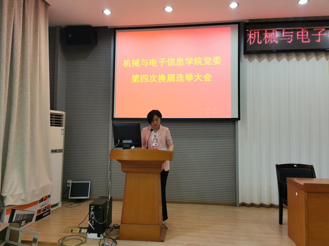 瞿祥华同志报告了第四届机械与电子信息院党委委员、新一届纪委检查委员会委员产生基本过程和候选人简历,宣读了校党委《关于同意大尺度AV天堂热国产第四届党委委员候选人、纪委委员候选人的批复》。