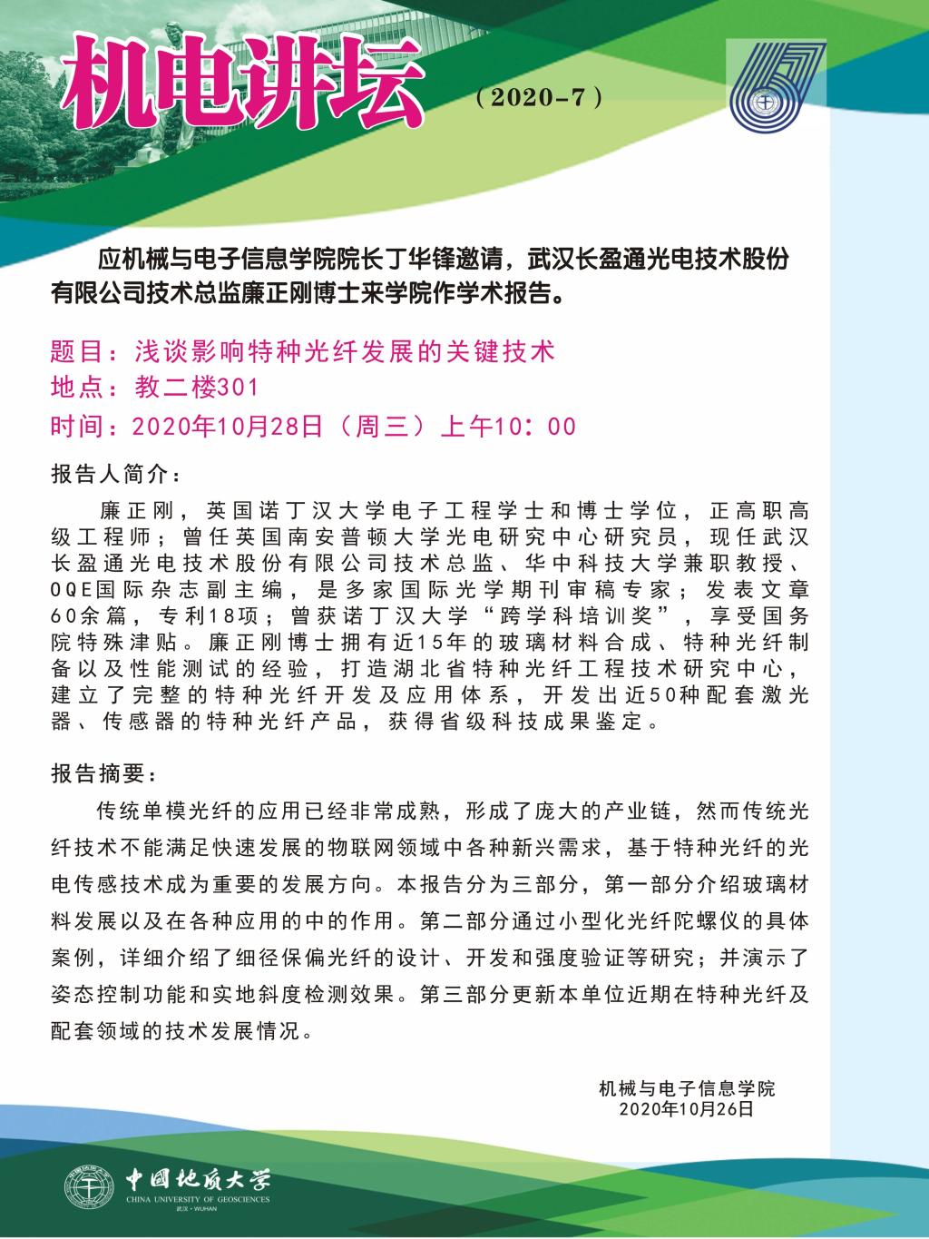 武汉长盈通光电技术股份有限公司技术总监廉正刚博士学术报告