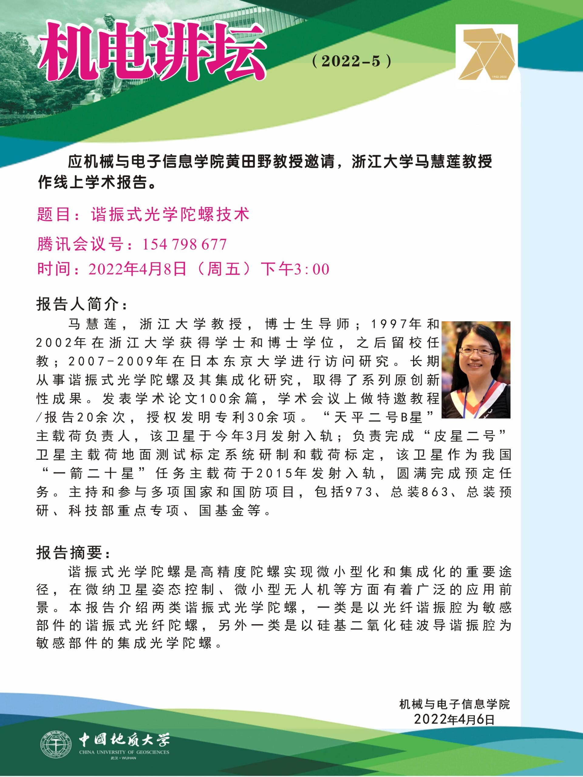 机电讲坛(2022-05):浙江大学马慧莲教授学术报告