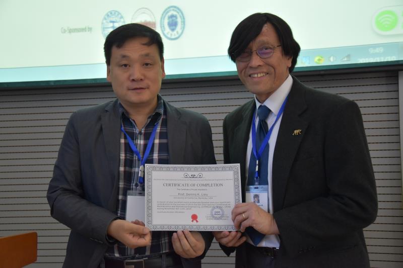 会议于11月10日上午在教二楼301会议室开幕。会议伊始,本次大会主席,中国地质大学(武汉)大尺度AV天堂热国产院长丁华锋教授致开幕辞,代表所有大会委员会成员对学者们的出席表示热烈欢迎,他表示相信各位专家的精彩报告与讨论将推动机电与机械工程领域的前沿研究,加强领域了解、促进合作。来自美国加州大学伯克利分校的Dennis K. Lieu教授就混合动力汽车动能回收系统的控制作了主题演讲。会议共进行了4个主题演讲,随后,来自合肥工业大学的訾斌教授对演讲者进行了颁奖。