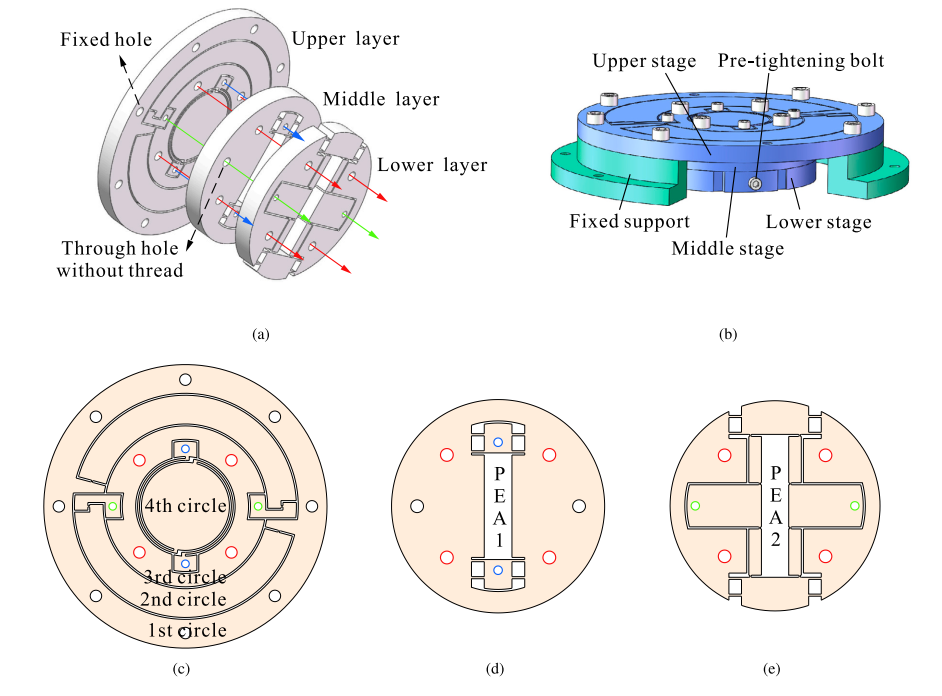 近日,我院甘金强老师和丁华锋教授指导硕士研究生张俊仓同学在机械工程领域顶级TOP期刊《Mechanism and Machine Theory》上刊发研究成果《Design of a pure rotation micropositioning stage with dual-range》。该文章针对精密机械中的转动操作,基于柔顺机构设计,提出了一种可实现无耦合纯转动的双行程精密定位平台设计。文章第一作者为机电学院2019级硕士研究生张俊仓,通讯作者为甘金强教老师,第三作者丁华锋教授。