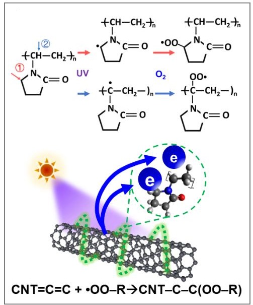 紫外线辐射剂量的监测对于提升公众健康意识和保障职业健康安全具有重要意义。然而,现有便携式紫外剂量检测技术普遍存在成本高、普及性差等问题,难以适应资源有限地区的应用需求。针对这一挑战,研究团队开发出一种基于聚乙烯吡咯烷酮(Polyvinyl pyrrolidone, PVP)官能化碳纳米管网络薄膜的“简约创新”型低成本器件。该器件通过紫外辐照诱导PVP发生光致化学键断裂,生成的自由基与碳纳米管发生化学吸附反应,从而调控其导电性能。这一过程产生的非易失性电导变化与辐照剂量呈线性相关,实现了对累积紫外线剂量的精准监测,分辨率高达 36 μJ/cm⟡。基于电导与紫外线剂量之间的线性关系,可以无需依赖存储单元和高速采样,仅仅通过简单、低成本的电子电路实现紫外线剂量的直接读取。该紫外线剂量计单个制造成本低于 0.1 元人民币,特别适用于个人日常健康监护、职业暴露场所监测以及欠发达地区的公共健康应用,展现出广阔的应用前景和社会价值。
