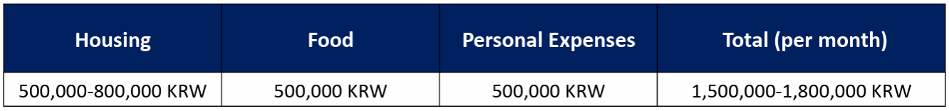 费用:免学费,住宿费学院按照6000元人民币/人(安山校区)、12000元人民币/人(首尔校区)标准予以资助,隔离费用全额资助,其他费用自理。