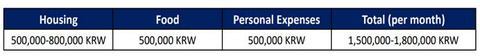 4. 费用:免学费,住宿费学院按照6000元人民币/人(安山校区)、12000元人民币/人(首尔校区)标准予以资助,其他费用自理。