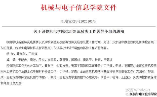 自新冠肺炎疫情发生以来,机电学院党委认真学习习近平总书记系列重要讲话精神,坚决贯彻执行党中央和教育部有关疫情防控的重要指示,按照学校党委的统一要求,迅速行动,统筹做好师生疫情防控和日常服务工作,协调做好师生专业学习“第一课堂”与思政教育“第二课堂”,“三力合一”凝聚起机电学院疫情防控强大合力。