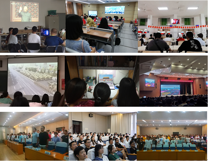 (通讯员:武开群 摄影:孙灿 武开群 徐恒福)10月1日上午10时,庆祝中华人民共和国成立70周年大会在北京天安门广场隆重举行,中共中央总书记、国家主席、中央军委主席习近平出席大会并发表重要讲话。大尺度AV天堂热国产组织师生代表在弘毅堂与教二楼301报告厅观看大会盛况,同时号召全院同学以团支部、宿舍、实验室等为单位集中观看大会直播。