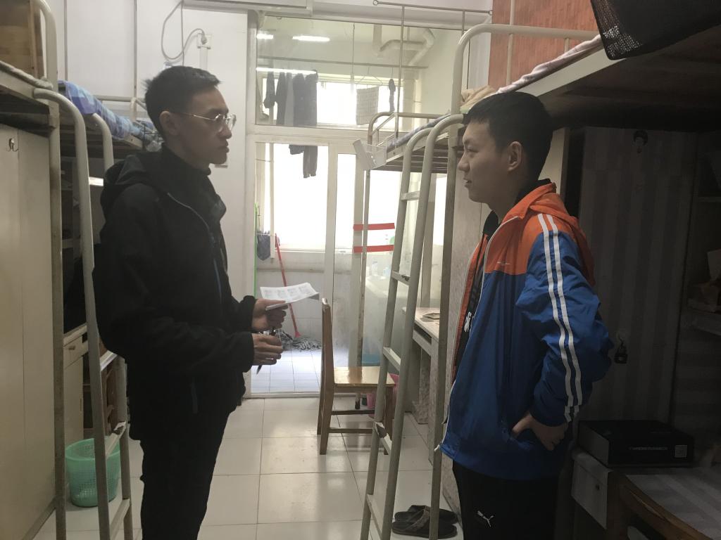 本次学生寝室走访活动目的在于深入了解学生的学习生活情况、强化学生宿舍安全文明建设,为同学们营造一个更加安全、文明、健康的生活环境。本次活动主要走访了58栋、62栋的部分寝室。