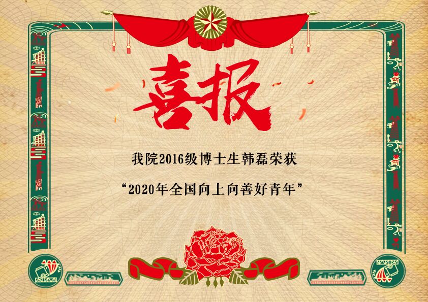 [2020.5]我院2016级博士生韩磊 荣获 “全国向上向善好青年”